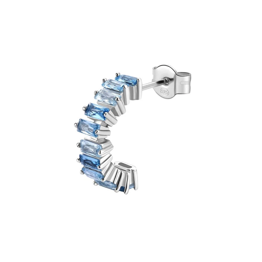 Stříbrná náušnice polokroužek. Náušnice je vyrobená ze stříbra ryzosti 925/1000 a osazená prvotřídními zirkony. Povrch náušnice je porhodiovaný. Nanesené rhodium dodává náušnici jasnou barvu s leskem a zajišťuje její dlouhodobý bezchybný vzhled. Náušnicové zapínání je na puzetku. Uvedená cena platí za jednu náušnici.