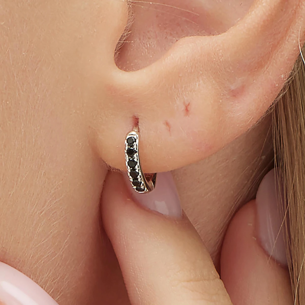Náušnice se zirkony kroužek. Náušnice je vyrobená ze stříbra ryzosti 925/1000, osazená prvotřídními zirkony. Povrch náušnice je porodiovaný. Nanesené rodium dodává náušnici jasnou barvu s leskem, současně chrání její povrch před poškrábáním a zaručuje náušnici dlouhodobý bezvadný vzhled. Náušnicové zapínání je kloubové. Uvedená cena platí ze jednu náušnici.