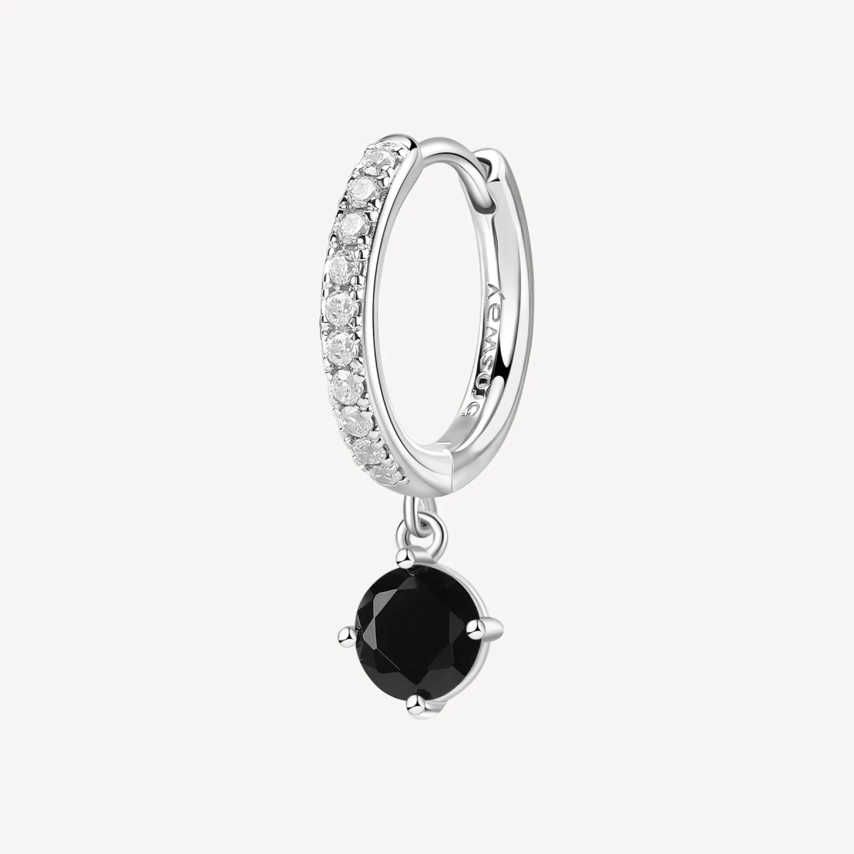Náušnice se zirkony kroužek. Náušnice je vyrobená ze stříbra ryzosti 925/1000, osazená prvotřídními zirkony. Povrch náušnice je porodiovaný. Nanesené rodium dodává náušnici jasnou barvu s leskem, současně chrání její povrch před poškrábáním a zaručuje náušnici dlouhodobý bezvadný vzhled. Náušnicové zapínání je kloubové. Uvedená cena platí ze jednu náušnici.