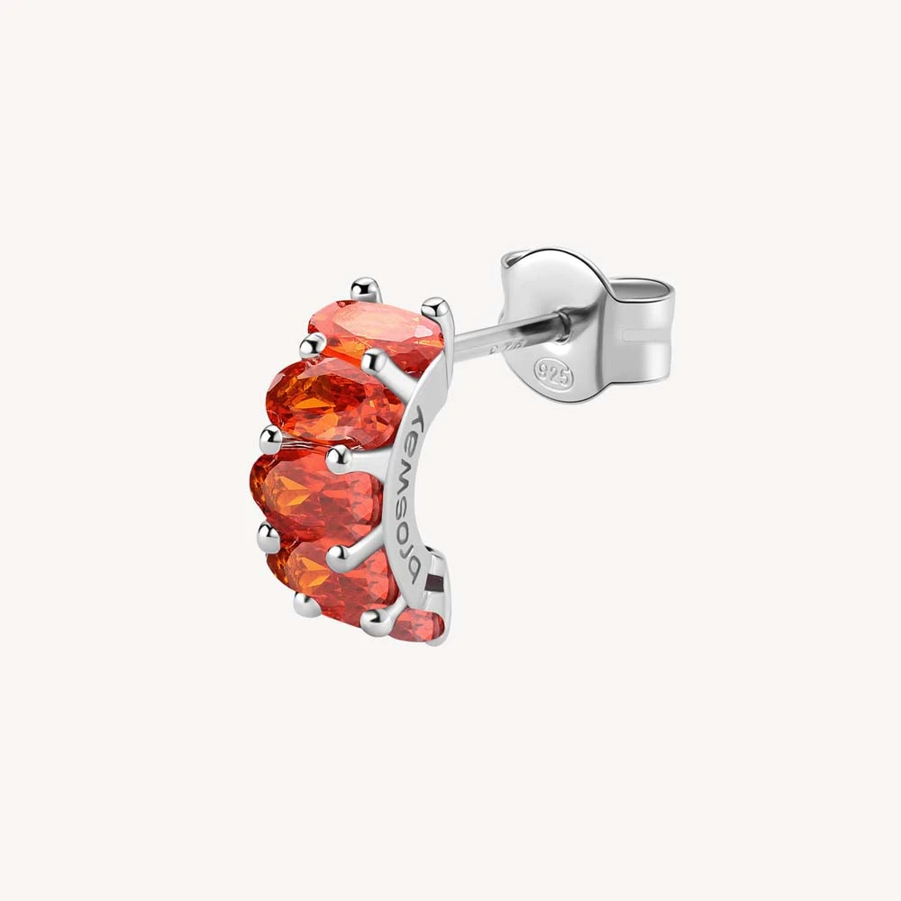 Stříbrná náušnice polokroužek. Náušnice je vyrobená ze stříbra ryzosti 925/1000 a osazená prvotřídními zirkony. Povrch náušnice je porhodiovaný. Nanesené rhodium dodává náušnici jasnou barvu s leskem a zajišťuje její dlouhodobý bezchybný vzhled. Náušnicové zapínání je na puzetku. Uvedená cena platí za jednu náušnici.