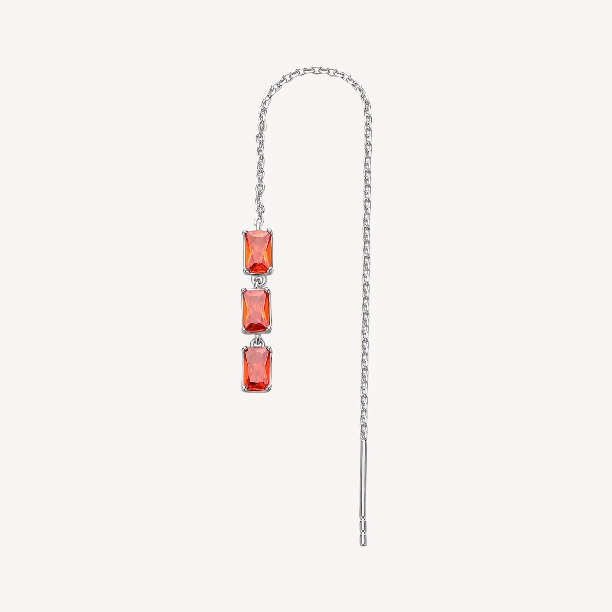 Stříbrná visací náušnice. Náušnice je vyrobená ze stříbra ryzosti 925/1000 a osazená prvotřídními zirkony. Povrch náušnice je porhodiovaný. Nanesené rhodium dodává náušnici jasnou barvu s leskem a zajišťuje její dlouhodobý bezchybný vzhled. Uvedená cena platí za jednu náušnici.