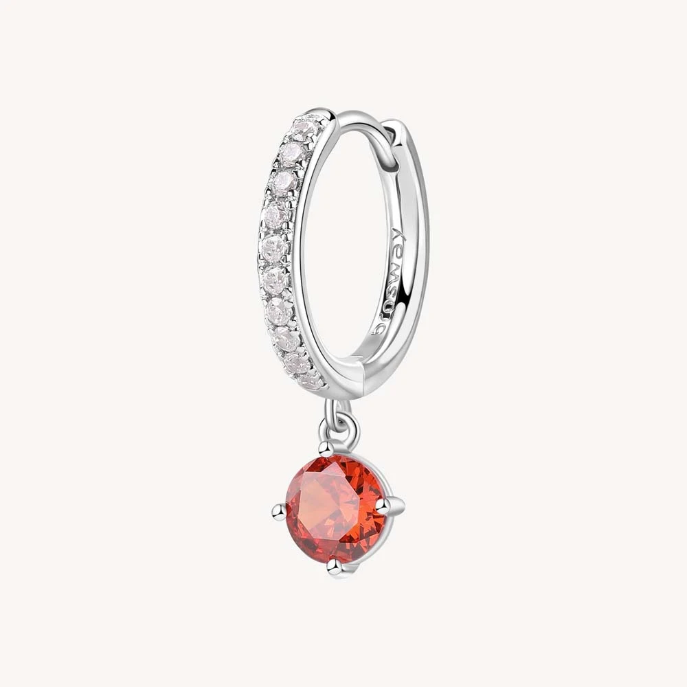 Stříbrná visací náušnice se zirkony. Náušnice je vyrobená ze stříbra ryzosti 925/1000 a osazená prvotřídními zirkony. Povrch náušnice je porhodiovaný. Nanesené rhodium dodává náušnici jasnou barvu s leskem a zajišťuje její dlouhodobý bezchybný vzhled. Náušnicové zapínání je kloubové. Uvedená cena platí za jednu náušnici.