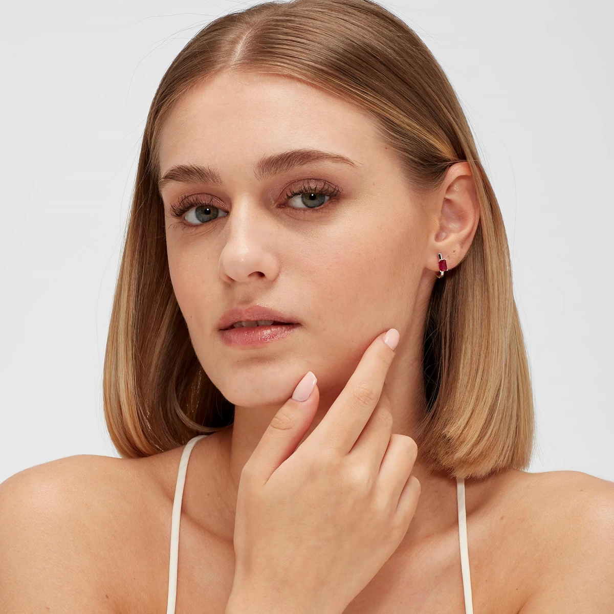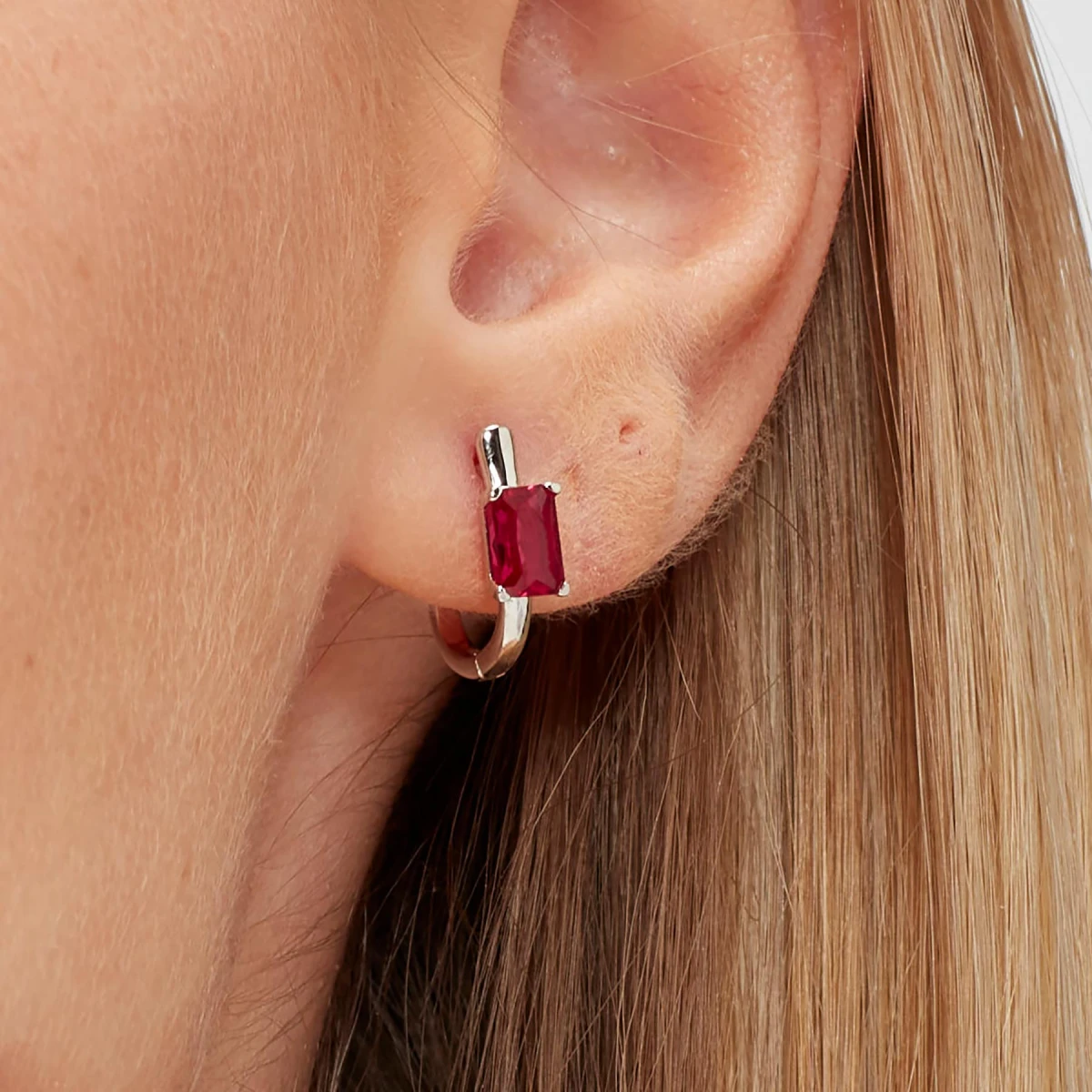 Stříbrná náušnice s červeným kamínkem. Náušnice je vyrobená ze stříbra ryzosti 925/1000 a osazená prvotřídním zirkonem. Povrch náušnice je porhodiovaný. Nanesené rhodium dodává náušnici jasnou barvu s leskem a zajišťuje její dlouhodobý bezchybný vzhled. Náušnicové zapínání je kloubové. Uvedená cena platí za jednu náušnici.