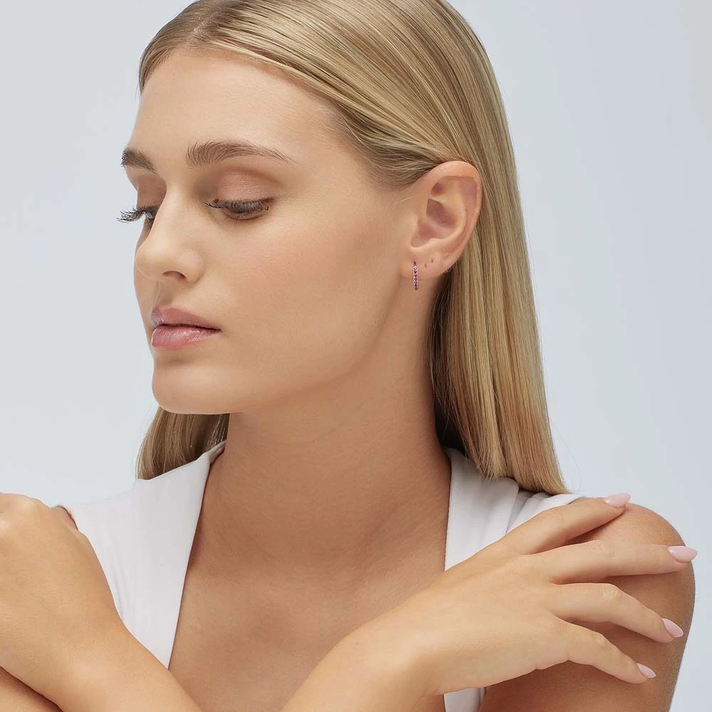 Stříbrná náušnice kroužek se zirkony. Náušnice je vyrobená ze stříbra ryzosti 925/1000 a osazená prvotřídními zirkony. Povrch náušnice je porhodiovaný. Nanesené rhodium dodává náušnici jasnou barvu s leskem a zajišťuje její dlouhodobý bezchybný vzhled. Náušnicové zapínání je kloubové. Uvedená cena platí za jednu náušnici.