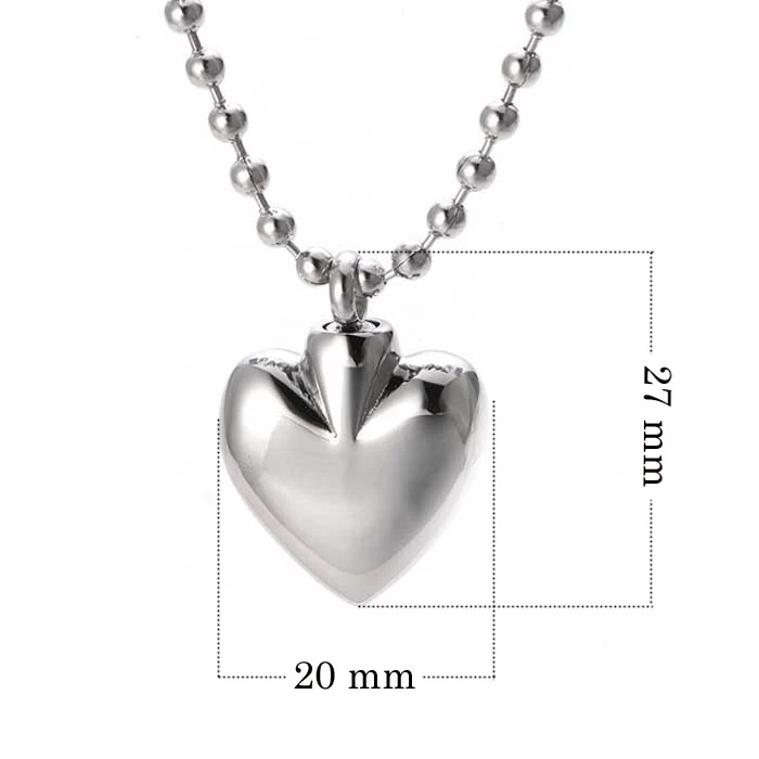 Přívěsek srdce z chirurgické oceli. Závěsné očko přívěsku lze odšroubovat a do přívěsku lze nasypat malé množství popela. Rozměr přívěsku 27x20mm najdete zobrazený na podpůrné fotografii. K přívěsku náleží ocelový řetízek dlouhý 60 cm. Na přání lze řetízek zdarma zkrátit. Na přívěsek je možné vyrýt např. jméno.