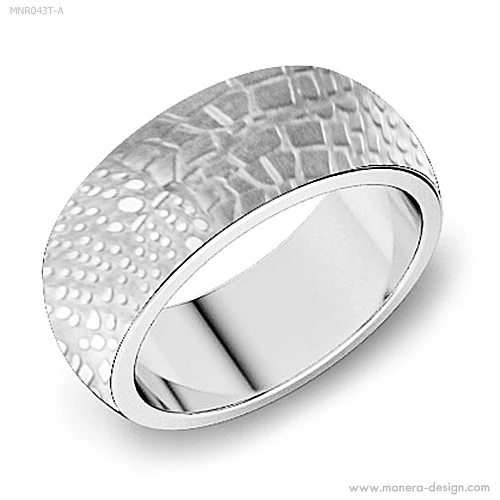 Prsten z chirurgické oceli 316L. Povrch prstenu je leštěný. Prsten má vzor „hadí kůže“. Šířka prstenu 8mm. Pěkný pánský ocelový prsten.