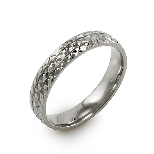 Prsten z chirurgické oceli 316l. Prsten má leštěný povrch se vzorem. Tento prsten je možné použít jako snubní. Šíře 4mm.