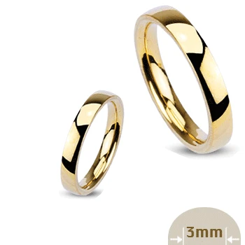 Prsten z chirurgické oceli 316L. Prsten má pozlacený povrch vyleštěný do zrcadlového lesku. Krásný jednoduchý prsten. Prsten lze použít jako snubní. Prsten je široký 3mm.