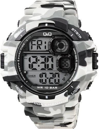 Sportovní digitální hodinky pro muže v army stylu od výrobce Q+Q, který patří do skupiny Citizen. Značka Q+Q je prosnulá díky svým spolehlivým hodinářským výrobkům po celém světě. Náramkové hodinky Q+Q pro aktivní muže.