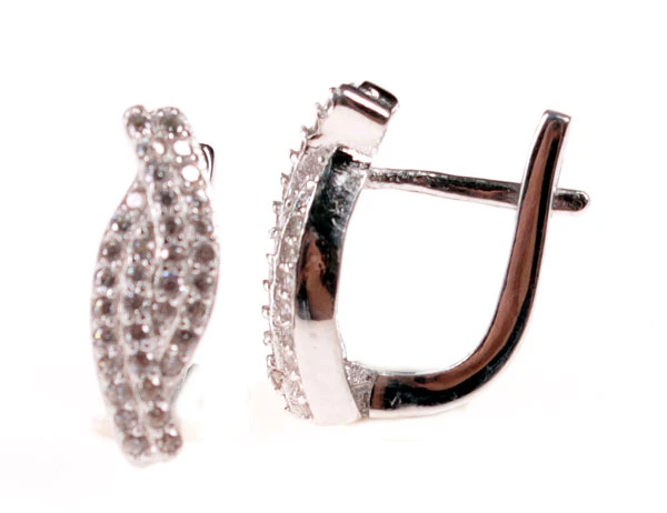Stříbrné náušnice se zirkony. Nanesené rhodium spolu se zirkony dodává náušnicím luxusní vzhled, zabraňuje přirozené oxidaci stříbra a omezuje případné alergické reakce na stříbro.