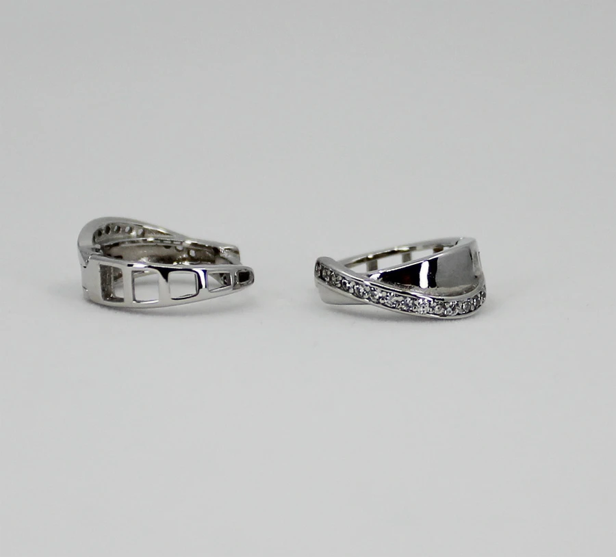 Náušnice kroužky vyrobené z kvalitního stříbra 925/1000. Náušnice jsou osazené prvotřídními zirkony. Povrch náušnic je porhodiovaný, což jim dodává jasnou barvu s leskem, potlačuje přirozenou oxidaci stříbra, zvyšuje odolnost povrchu proti poškrábání a zaručuje dlouhodobý bezvadný vzhled náušnic. Náušnice jsou široké 5mm, vnější průměr náušnic 15mm. Náušnicové zapínání je kloubové.