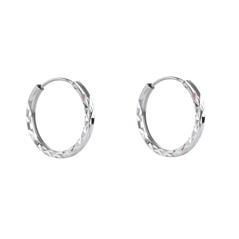 Stříbrné kruhové náušnice se vzorem. Náušnice kruhy vyrobené ze stříbra 925/1000. Povrch náušnic je porhodiovaný. Úprava náušnic rhodiováním jim dodává jasnou barvu s leskem, zvyšuje odolnost povrchu proti poškrábání a zaručuje náušnicím dlouhodobý bezchybný vzhled. Náušnice jsou široké 2mm, vnější průměr 20mm.