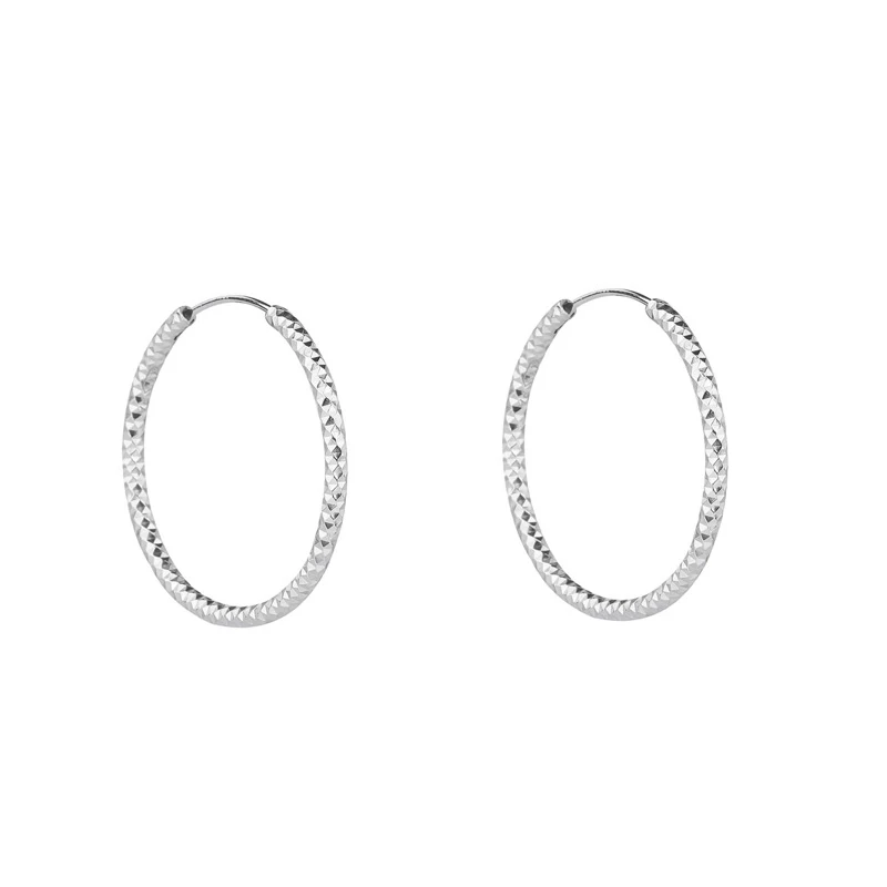 Stříbrné kruhové náušnice se vzorem. Náušnice kruhy vyrobené ze stříbra 925/1000. Povrch náušnic je porhodiovaný. Úprava náušnic rhodiováním jim dodává jasnou barvu s leskem, zvyšuje odolnost povrchu proti poškrábání a zaručuje náušnicím dlouhodobý bezchybný vzhled. Náušnice jsou široké 2mm, vnější průměr 30mm.