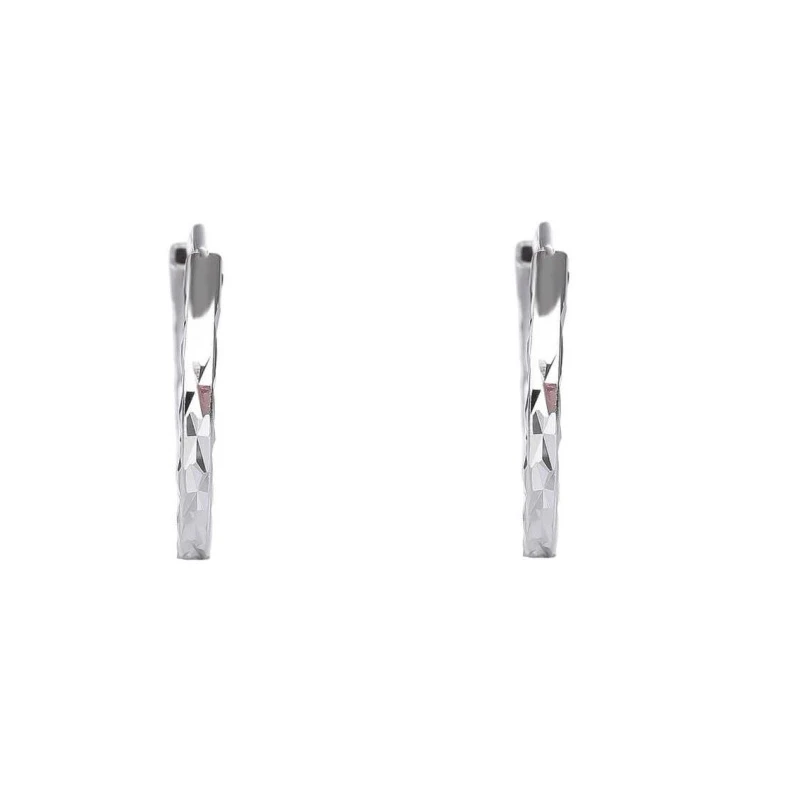 Stříbrné kruhové náušnice se vzorem. Náušnice kruhy vyrobené ze stříbra 925/1000. Povrch náušnic je porhodiovaný. Úprava náušnic rhodiováním jim dodává jasnou barvu s leskem, zvyšuje odolnost povrchu proti poškrábání a zaručuje náušnicím dlouhodobý bezchybný vzhled. Náušnice jsou široké 2mm, vnější průměr 25mm.