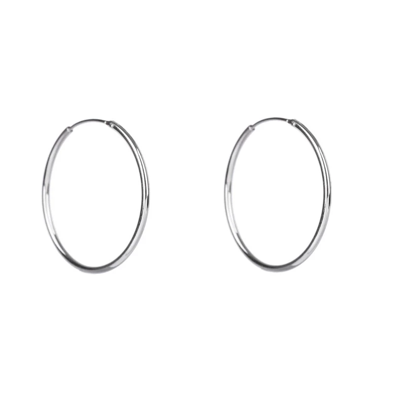 Kruhové náušnice vyrobené ze stříbra 925/1000. Povrch náušnic je porhodiovaný. Úprava náušnic rhodiováním jim dodává jasnou barvu s leskem, zvyšuje odolnost povrchu proti poškrábání a zaručuje náušnicím dlouhodobý bezchybný vzhled. Náušnice jsou široké 1,6 mm, vnější průměr 35mm.