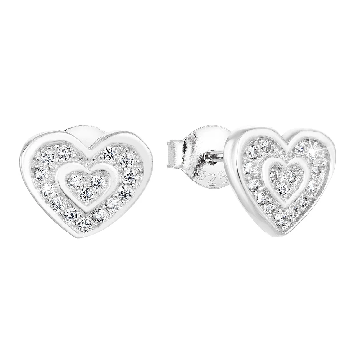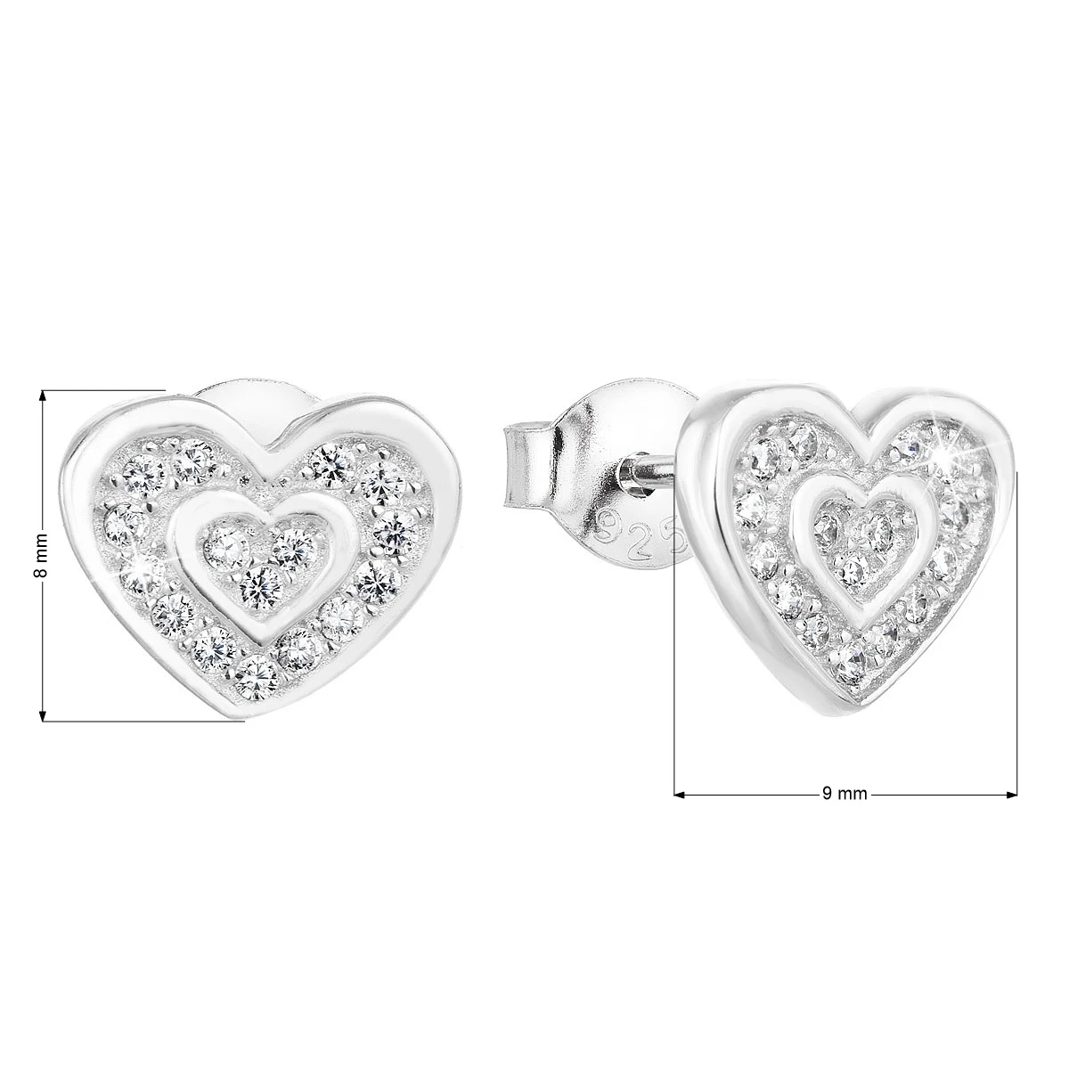 Stříbrné náušnice se zirkony pecky va tvaru srdíček. Na výrobu náušnic bylo použito stříbro ryzosti 925/1000. Povrch náušnic je porhodiovaný. Úprava stříbra rhodiováním dává náušnicím jasnou barvu s leskem a současně potlačuje přirozenou oxidaci stříbra. Náušnicové zapínání je na puzety. Rozměr srdíček 8x9mm najdete zobrazený na podpůrné fotografii.