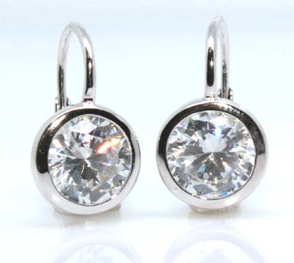 Stříbrné náušnice se zirkony. Povrch náušnic je porhodiovaný. Povrch upravený rhodiem má jasnou barvu a lesk. Rhodium současně zamezuje přirozené oxidaci stříbra. Zirkony mají průměr 10mm, celkový rozměr náušnice 18x10mm, rozměr náušnicového zapínání 15x9mm.