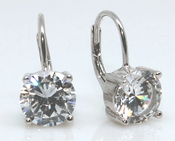Stříbrné náušnice se zirkony. Povrch náušnic je porhodiovaný. Povrch upravený rhodiem má jasnou barvu a lesk. Rhodium současně zamezuje přirozené oxidaci stříbra. Zirkony mají průměr 8mm, celkový rozměr náušnice 15x8mm, rozměr náušnicového zapínání 10x7mm.