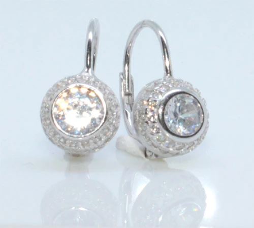 Stříbrné náušnice se zirkony. Povrch náušnic je porodiovaný. Nanesené rodium dodává naušnicím zářivou barvu s leskem a současně zamezuje přirozené oxidaci stříbra. Ozdobná část náušnic se zirkony má průměr 8,5 mm. Náušnice mají zapínání na dámský patent. Celkový rozměr náušnice 16x8,5x9 mm.