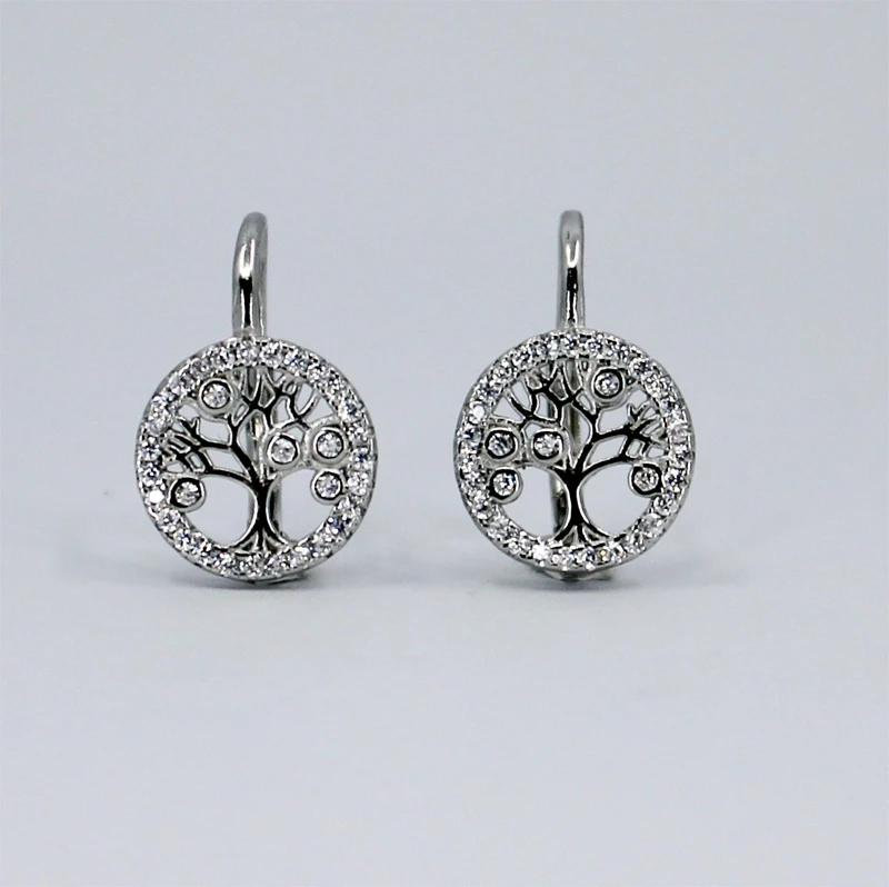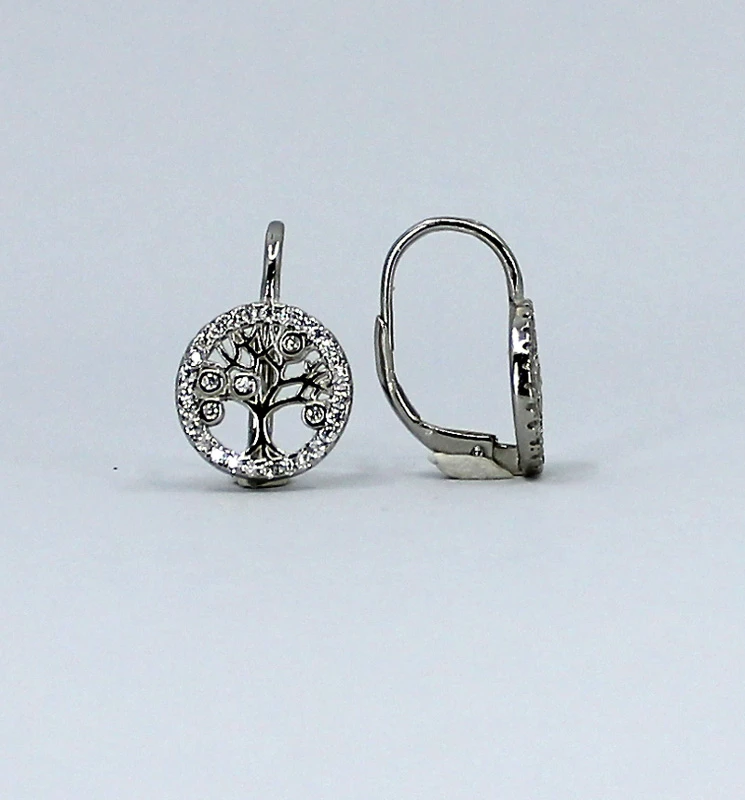 Visací náušnice se stromem života. Náušnice jsou vyrobené ze stříbra 925/1000. Ozdoba se stromem života je osazena kvalitními zirkony. Povrch náušnic je porhodiovaný. Úprava rhodiováním dává náušnicím jasnou barvu s leskem, potlačuje přirozenou oxidaci stříbra a zaručuje náušnicím dlouhodobý bezvadný vzhled. Náušnicové zapínání je na klapku. Kulatá ozdoba se stromem života má průměr 11mm, délka náušnice 16mm.