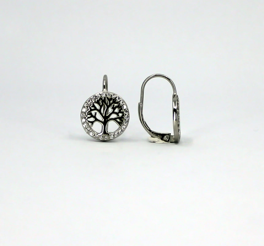 Visací náušnice se stromem života. Náušnice jsou vyrobené ze stříbra 925/1000. Ozdoba se stromem života je osazena kvalitními zirkony. Povrch náušnic je porhodiovaný. Úprava rhodiováním dává náušnicím jasnou barvu s leskem, potlačuje přirozenou oxidaci stříbra a zaručuje náušnicím dlouhodobý bezvadný vzhled. Náušnicové zapínání je na klapku. Kulatá ozdoba se stromem života má průměr 11mm, délka náušnice 16mm.