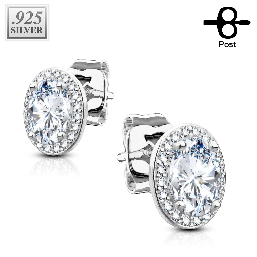 Stříbrné náušnice se zirkony pecky se zapínáním na puzetky. Povrch náušnic je pokrytý platinou, která dodává náušnicím jasnou barvu s leskem. Rozměr ozdobné části náušnic 9x7mm.