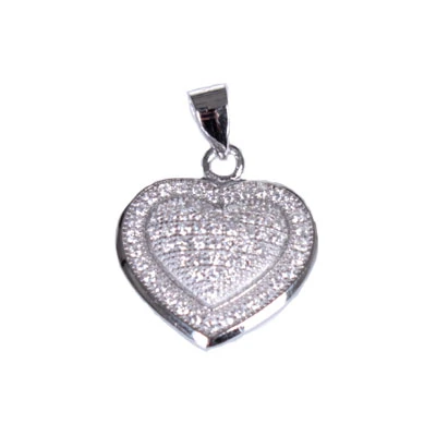 Stříbrný přívěsek srdce osazený zirkony. Povrch srdíčka je rhodiovaný. Očkem na přívěsku lze protáhnout řetízek s průměrem do 2,5mm. Rozměr srdce 14×14mm.