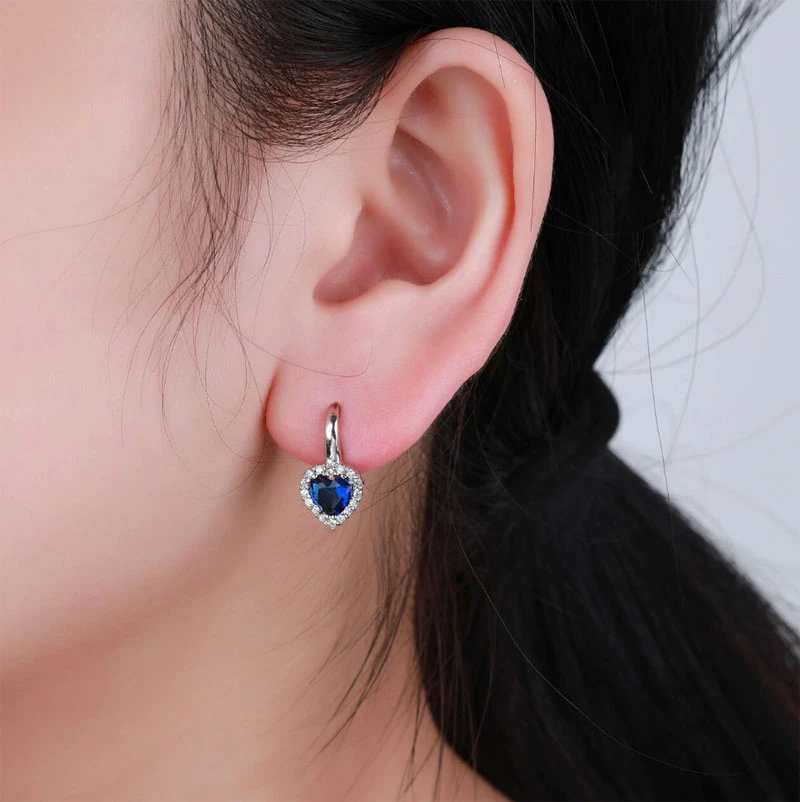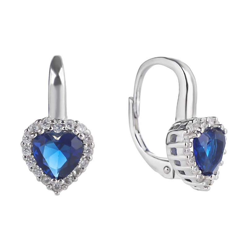 Visací náušnice srdíčka ze stříbra ryzosti 925/1000. Náušnice jsou ozdobené modrými a bílými zirkony. Povrch náušnic je porhodiovaný, úprava povrchu rhodiováním dodává náušnicím jasnou barvu s leskem, chrání povrch náušnic proti poškrábání a potlačuje přirozenou oxidaci stříbra, náušnice tak budou dlouhou dobu bezvadný vzhled. Náušnice jsou dlouhé 19 mm, ozdoba srdíčka má rozměr 9x9 mm. Náušnicové zapínání je na klapku.
