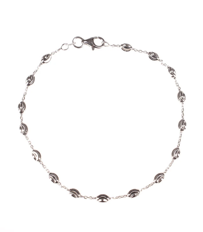 Jemný stříbrný náramek pro ženy. Náramek je vyrobený ze stříbra ryzosti 925/1000. Povrch náramku je porhodiovaný. Úprava rhodiováním dodává náramku jasnou barvu s leskem, chrání povrch náramku proti poškrábání náramek tak bude mít dlouhou dobu bezvadný vzhled. Oválné články mají rozměr 5x3mm, řetízkové části jsou široké 1,0mm. Náramek má zapínání na karabinku.