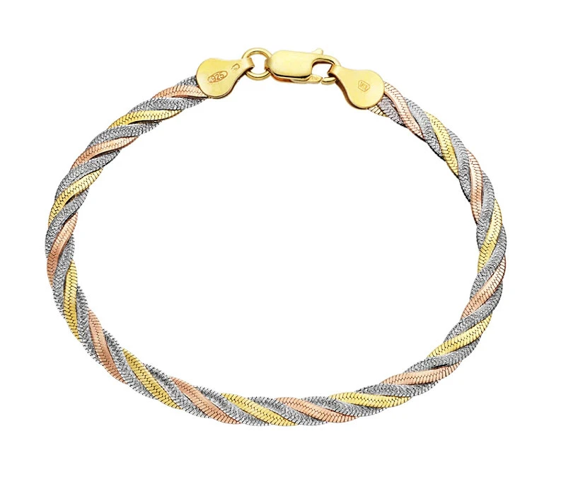 Dámský stříbrný pozlacený náramek ze stříbra ryzosti 925/1000. Náramek je pozlacený žlutým a růžovým zlatem, stříbrné části náramku jsou porodiované. Úprava povrchu zlacením a rodiováním dodává šperku jasnou barvu s leskem a současně zajišťuje dlouhodobý bezvadný vzhled náramku. Zapínání náramku je na karabinku. Náramek je široký 4mm.