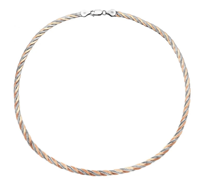 Dámský pozlacený třířadý náhrdelník ze stříbra 925/1000. Pozlacení je provedeno růžovým zlatem. Stříbrná řada má porhodiovaný povrch. Elegantní náhrdelník široký 4mm. Zapínání náhrdelníku je na karabinku.