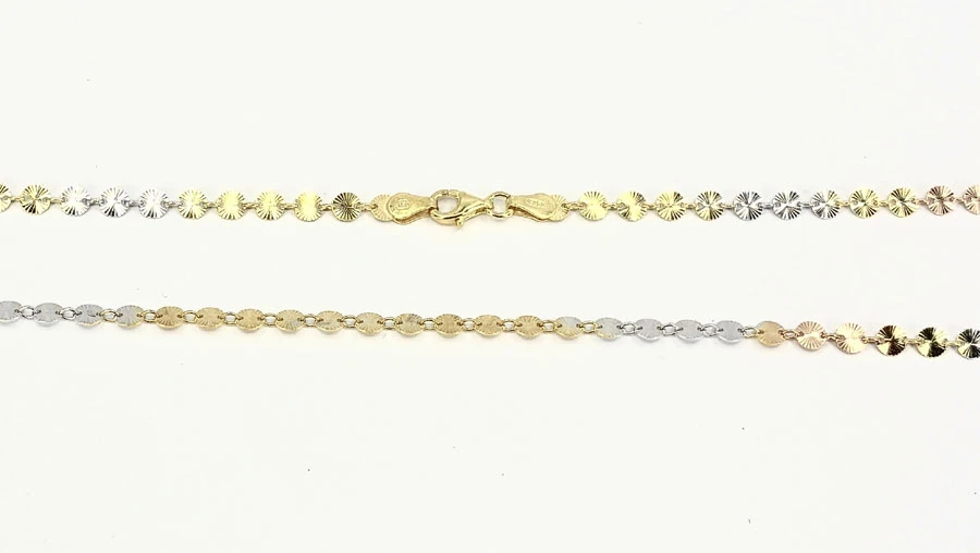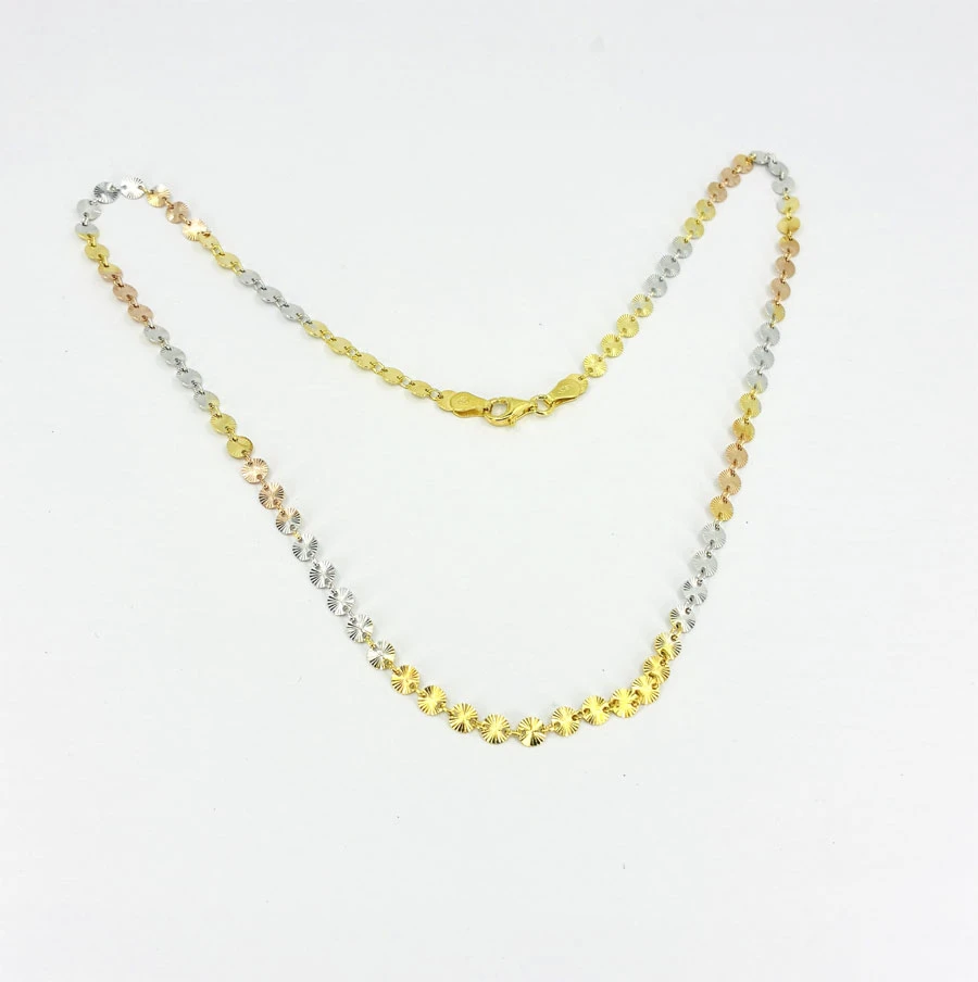 Náhrdelník ze stříbra ryzosti 925/1000. Povrch náhrdelníku je pozlacený a porhodiovaný. Úprava rhodiováním dodává náhrdelníku jasnou barvu s leskem, chrání povrch šperku proti poškrábání, náhrdelník tak bude mít dlouhou dobu bezvadný vzhled. Pozlacený povrch dodává hrdelníku luxusní vzhled. Kulaté články náhrdelníku mají průměr 4mm. Náhrdelník má zapínání na karabinku.