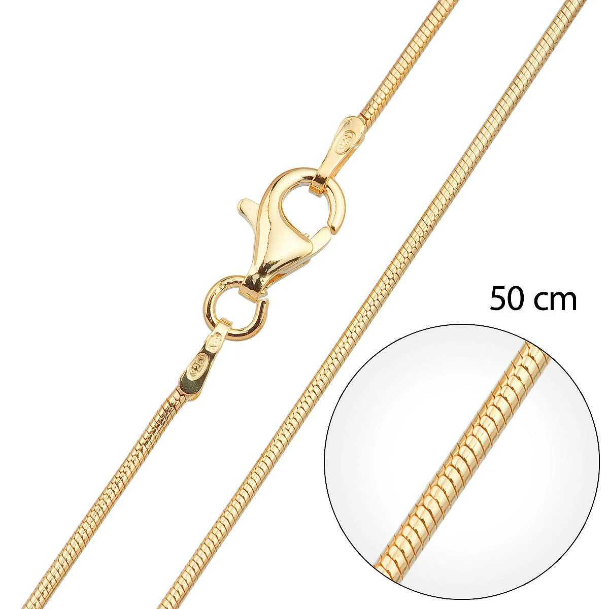 Stříbrný pozlacený řetízek hádě délka 50 cm 30012
