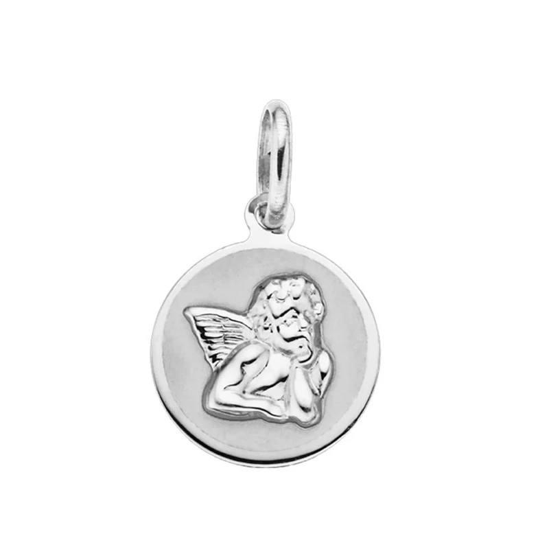 Stříbrný přívěsek anděl: Symbol ochrany a naděje. Přívěsek je vyrobený ze stříbra 925/1000. Motiv andělíčka je plastický lesklý, na matném podkladě. Průměr přívěsku 12 mm, závěsným očkem na přívěsku lze provléct stříbrný řetízek s průměrem do 3,0 mm.