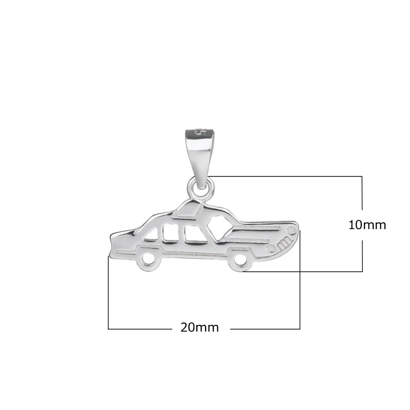 Přívěsek pro milovníky aut ze stříbra 925/1000. Přívěsek má porhodiovaný povrch. Nanesené rhodium dodává přívěsku jasnou barvu s leskem, odolnost proti poškrábání, zamezuje přirozené oxidaci stříbra a přívěsek tak bude mít po dlouhou dobu bezvadný vzhled. Auto má rozměr 20x10mm. K přívěsku náleží stříbrný řetízek vzor ankr.