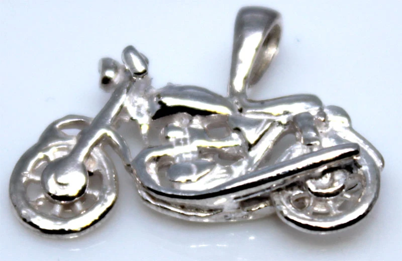 Přívěsek ze stříbra s motivem motorky. Rozměr přívěsku 15x21mm. Očkem lze protáhnout stříbrný řetízek s průměrem do 2mm.