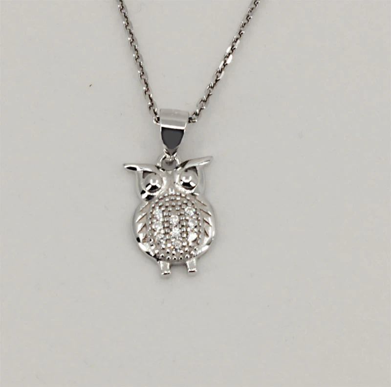 Přívěsek ve tvaru sovy vyrobený ze stříbra 925/1000. Povrch přívěsku je porhodiovaný. Úprava povrchu rhodiováním dodává přívěsku jasnou barvu s leskem, zvyšuje odolnost povrchu proti poškrábání, přívěsek bude mít po dlouhou dobu bezvadný vzhled. Rozměr přívěsku 15x10mm. Závěsným očkem na přívěsku lze protáhnout řetízek s průměrem do 2,5mm. Vhodný stříbrný řetízek najdete v kategorii řetízky.