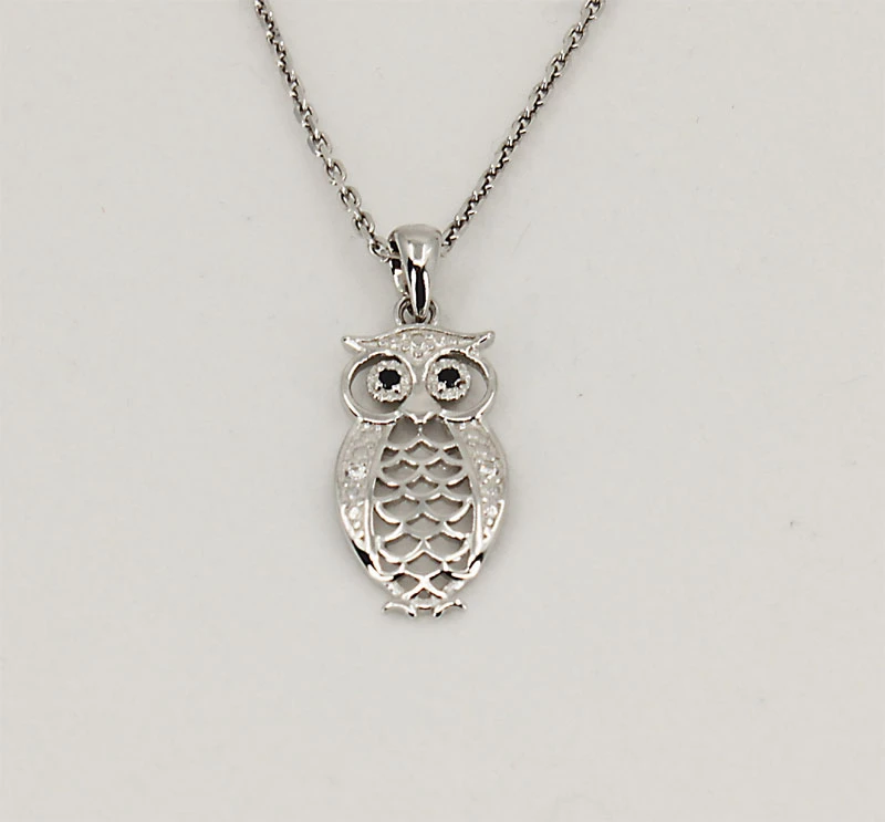 Přívěsek ve tvaru sovy vyrobený ze stříbra 925/1000. Povrch přívěsku je porhodiovaný. Úprava povrchu rhodiováním dodává přívěsku jasnou barvu s leskem, zvyšuje odolnost povrchu proti poškrábání, přívěsek bude mít po dlouhou dobu bezvadný vzhled. Rozměr přívěsku 20x10mm. Závěsným očkem na přívěsku lze protáhnout řetízek s průměrem do 2,0mm. Vhodný stříbrný řetízek najdete v kategorii řetízky.