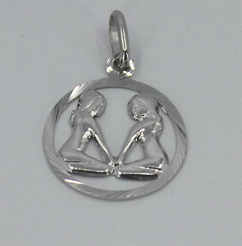 Přívěsek na krk se znamením Blíženec (22.5 - 21.6). Přívěsek je vyrobený ze stříbra 925/1000. Povrch přívěsku je leštěný. Přívěšek má porhodiovaný povrch. Úprava povrchu rhodiováním dodává přívěsku jasnou barvu s leskem a současně zamezuje přirozené oxidaci stříbra. Porhodiovaný povrch přívěsku je také odolnější vůči poškrábání, šperk si tak uchová po dlouhou dobu bezchybný vzhled. Závěsným očkem na znamení lze provléct řetízek s průměrem do 3,0mm. Celková "výška" přívěsku včetně závěsného oka 22mm, průměr ozdoby s blíženci 15mm.