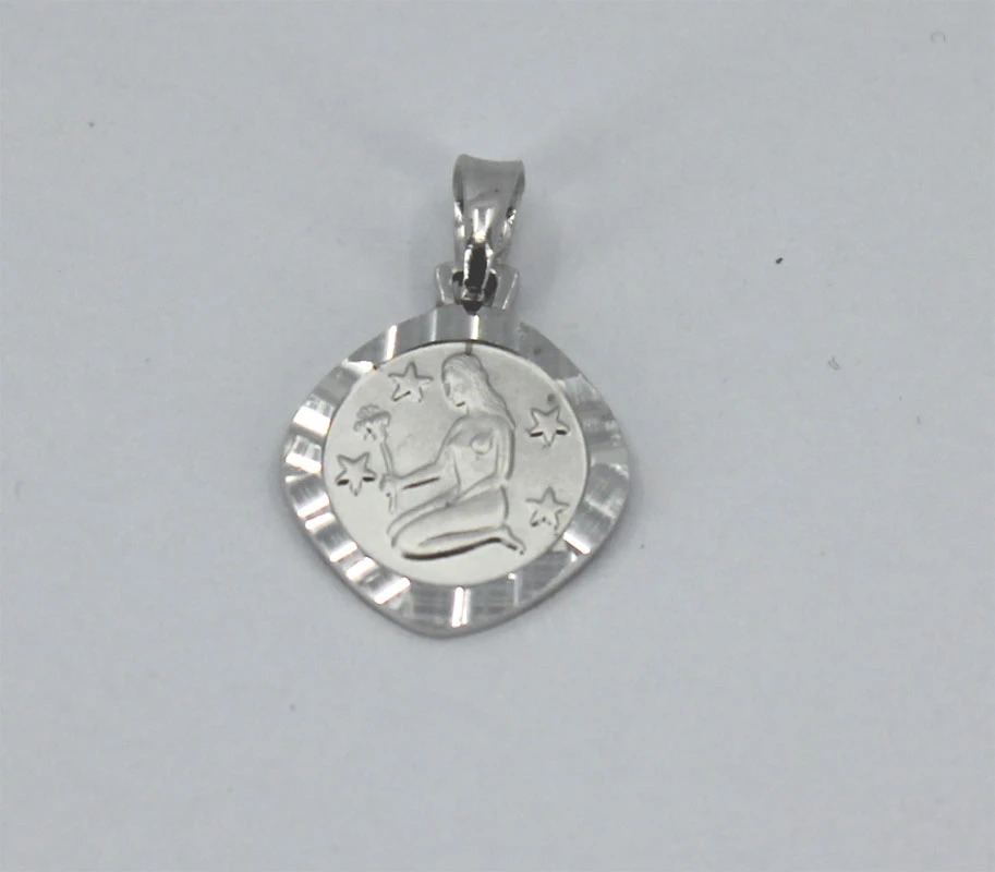 Přívěsek na krk se znamením Panna (23.8 - 22.9). Přívěsek je vyrobený ze stříbra 925/1000. Povrch přívěsku je kombinace mat/lesk, plastické znamení je matné orámované leštěným okrajem. Přívěšek má porhodiovaný povrch. Úprava povrchu rhodiováním dodává přívěsku jasnou barvu s leskem a současně zamezuje přirozené oxidaci stříbra. Porhodiovaný povrch přívěsku je také odolnější vůči poškrábání, šperk si tak uchová po dlouhou dobu bezchybný vzhled. Závěsným očkem na znamení lze provléct řetízek s průměrem do 3,0mm. Celková "výška" přívěsku včetně závěsného oka 20mm, rozměr ozdoby 12x12mm.