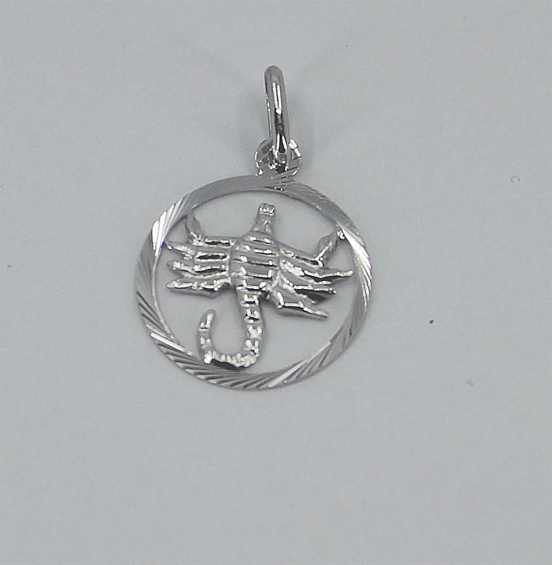 Přívěsek na krk se znamením Štír (24.10 - 22.11). Přívěsek je vyrobený ze stříbra 925/1000. Povrch přívěsku je leštěný. Přívěšek má porhodiovaný povrch. Úprava povrchu rhodiováním dodává přívěsku jasnou barvu s leskem a současně zamezuje přirozené oxidaci stříbra. Porhodiovaný povrch přívěsku je také odolnější vůči poškrábání, šperk si tak uchová po dlouhou dobu bezchybný vzhled. Závěsným očkem na znamení lze provléct řetízek s průměrem do 3,0mm. Celková "výška" přívěsku včetně závěsného oka 22mm, průměr ozdoby se štírem 15mm.