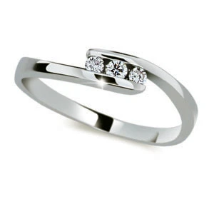 Stříbrný prstýnek ozdobený zirkony. Prstýnek má porhodiovaný povrch. Nanesené rhodium dodává prstýnku zářivou barvu a lesk. Šířka prstýnku je 2,0 mm v nejužším bodě a postupně se rozšiřuje na 3,8 mm v nejširším bodě ozdoby.