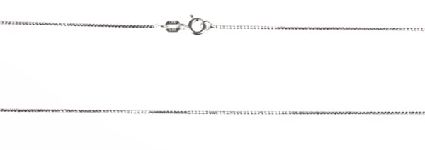 Řetízek stříbro 925/000. Povrch řetízku je porhodiovaný. Nanesené rhodium dává řetízku zářivou barvu a lesk. Řetízek se zapíná pomocí karabiny, průměr 1mm.