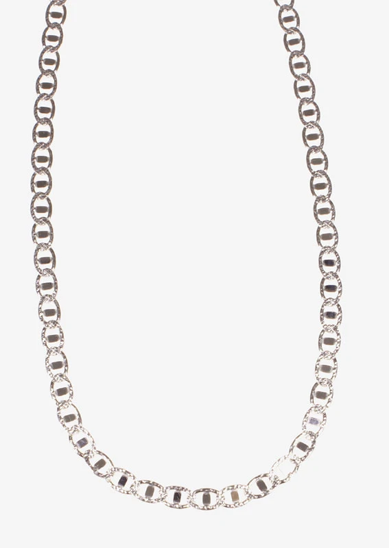 Řetízek stříbro 925/000. Povrch řetízku je porhodiovaný. Nanesené rhodium dává řetízku zářivou barvu a lesk. Řetízek se zapíná pomocí karabiny, šířka 6,0mm.