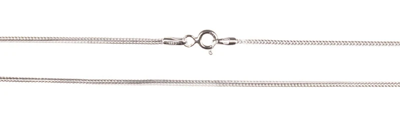 Řetízek stříbro 925/000. Povrch řetízku je porhodiovaný. Nanesené rhodium dává řetízku zářivou barvu a lesk. Řetízek se zapíná pomocí karabiny, šířka 1,1mm.