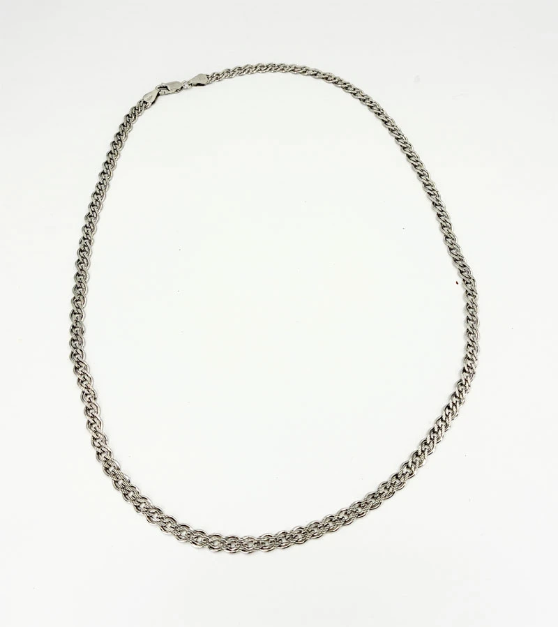 Řetízek ze stříbra ryzosti 925/1000. Povrch řetízku je porhodiovaný. Úprava rhodiováním dodává řetízku jasnou barvu s leskem, chrání povrch šperku proti poškrábání, řetízek tak bude mít dlouhou dobu bezvadný vzhled. Řetízek je široký 5mm, zapínání řetízku je karabinové.