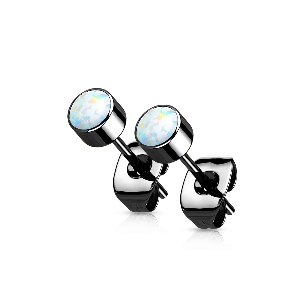 Náušnice pecky vyrobené z titanu. Náušnice jsou ozdobené syntetickým opálem. Průměr náušnic 3mm. Zapínání náušnic je na puzetky. Dřík náušnic má průměr 0,7 mm, délka dříku 10 mm. Uvedená cena platí za pár.