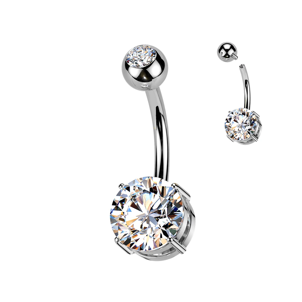 Piercing do břicha vyrobený z titanu ASTM F136, který se běžně používá při výrobě tělních implantátů. Titanový piercing do pupíku s ozdobou. Dřík piercingu má průměr 1,6 mm, délka 10 mm. Horní šroubovací kulička má průměr 5 mm, spodní kulatá ozdoba se zirkonem má průměr 8 mm.