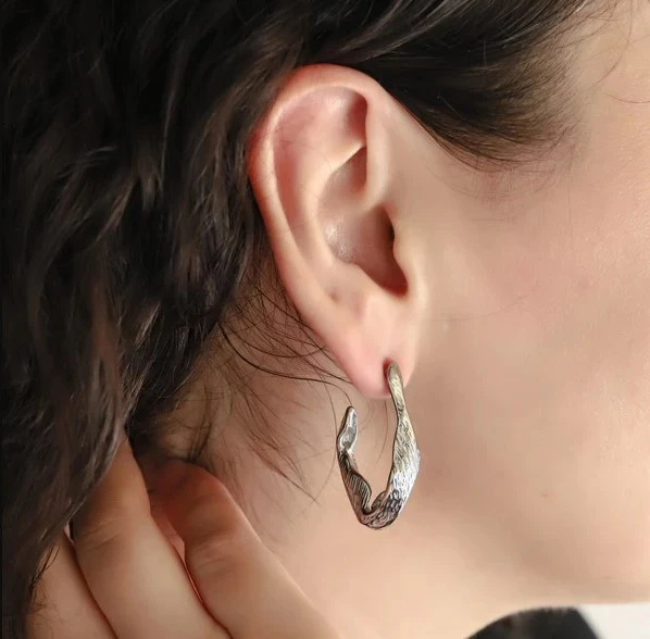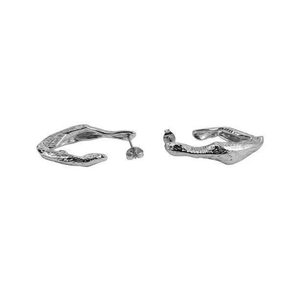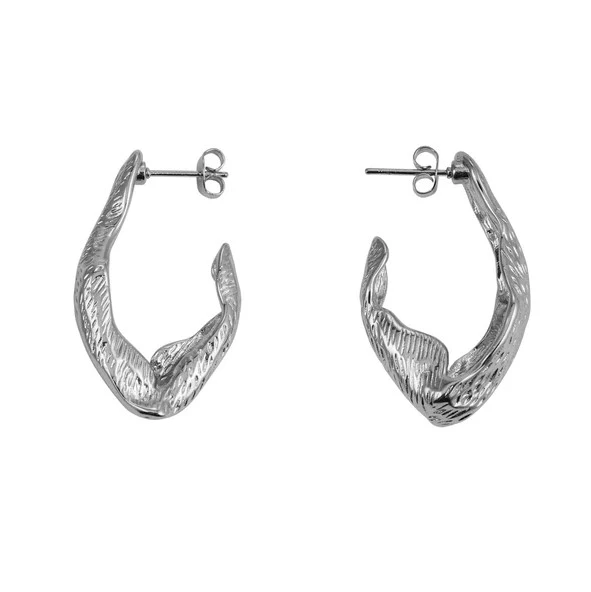 Náušnice visací vyrobené z chirurgické oceli. Povrch náušnic je leštěný se vzorem a to na vnější i vnitřní straně. Netradiční visací náušnice dlouhé 40mm. Náušnicové zapínání je na puzety.