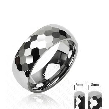 Prsten z wolframu. Prsten má leštěný povrch s ploškami po celém obvodě. Povrch prstenu je velmi odolný proti poškrábání. Ve velikostech 49–56 je prsten široký 6mm, ve velikostech 59–70 je prsten široký 8mm. Prsten lze použít jako snubní.